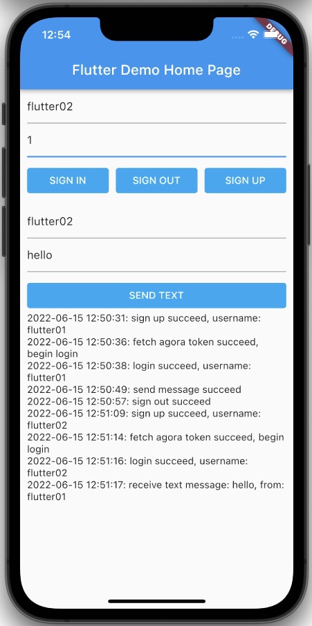 box, and click SIGN UP to register an account. In this example, register two accounts,flutter01